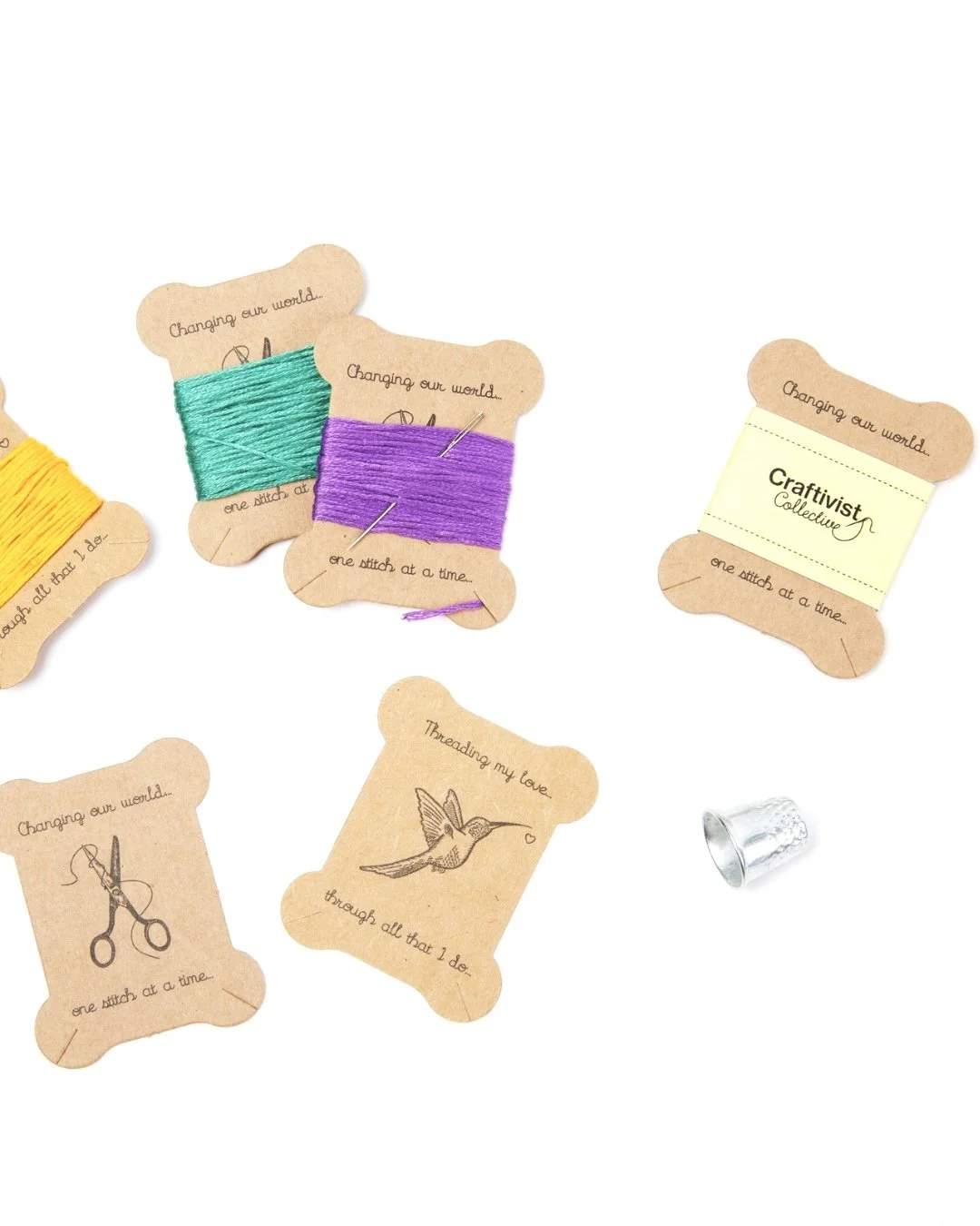 Craftivist Collective bobbin cards made ethically in Leeds, UK you can buy and which we use to wrap donated thread around for workshops and craftivism DIY kits.
