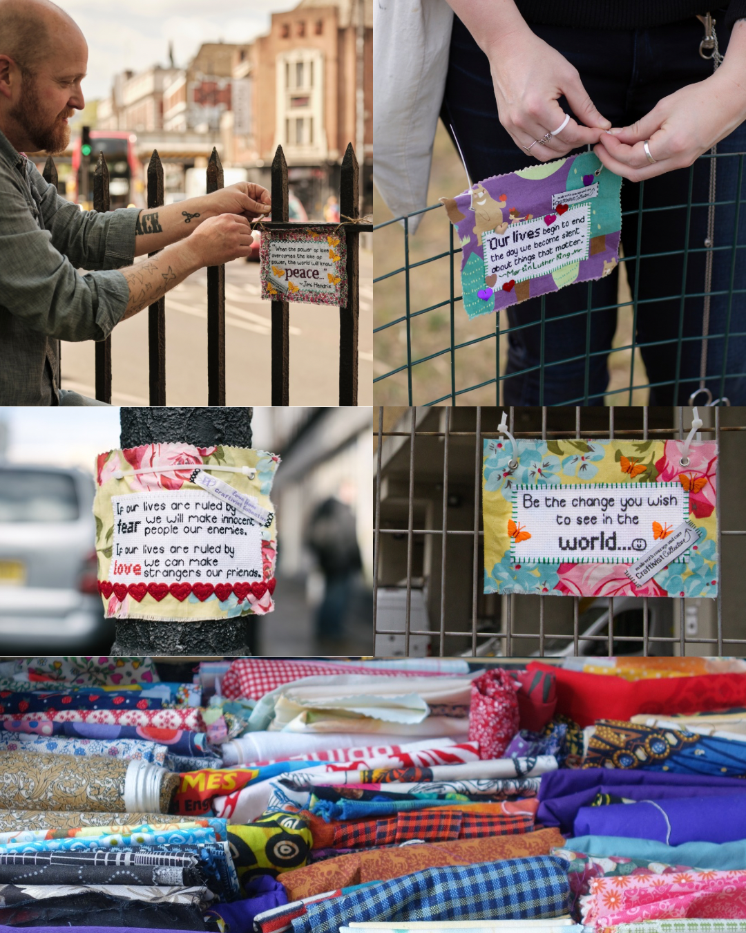 Workshops facilitated by Sarah P Corbett with diverse audiences including community groups, museum and gallery visitors, festival-goers, various religious groups, volunteer activist groupss, youth groups, professional campaign staff at registered charities, trustees of charities, refugees, asylum seekers and marginalised communities directly affected by social justice issues we are addressing. And they will also be used in our ethically made craftivism DIY kits you can find here as well bespoke kits made for charities and community groups. Some of our projects are issue-specific related to the climate crisis, human rights abuses, gender equality, and anti-fast fashion. Some projects are more holistic about how we can be kind, respectful and thoughtful global citizens. Read more about our work here.